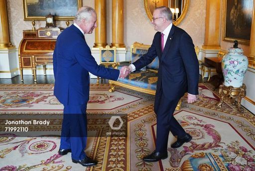 Pictured alongside is King Charles III receiving the Prime Minister of Australia.